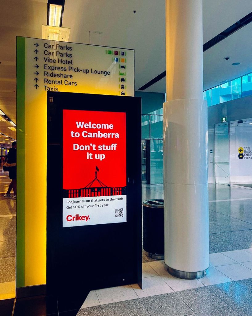 But it was also fun. Have a look what I put up all over Canberra airport on the first Sunday the politicians and their minders arrived for the first sitting days of parliament.